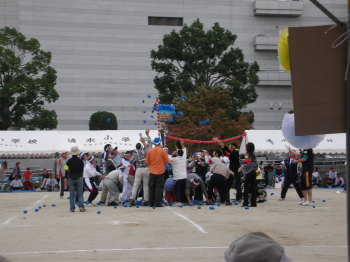 | 綱引き〜〜赤が勝つかな!?? | 白が勝つのかな??・・・ん〜どっちだろう?? |