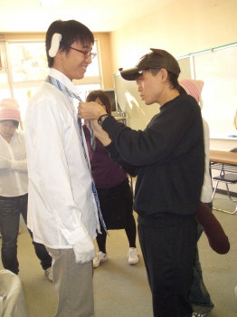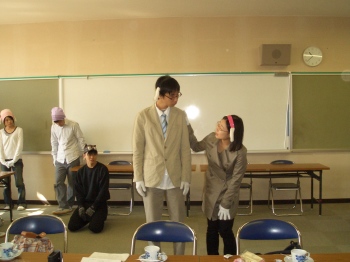 | パパにネクタイをつける、コムサ店員☆★☆ | 最終リハーサル。「ねぇあなた・・・」「なんだいママ?」 |