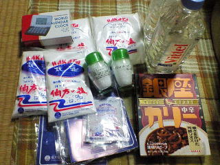 今回の参加賞もろもろ。やっぱり塩多いなーっ!