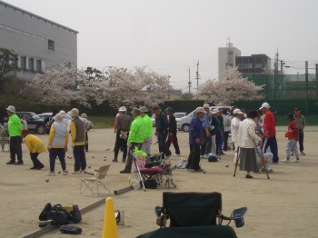 桜咲いたよ☆ペタンク大会\(^▽^\)(/^▽^)/